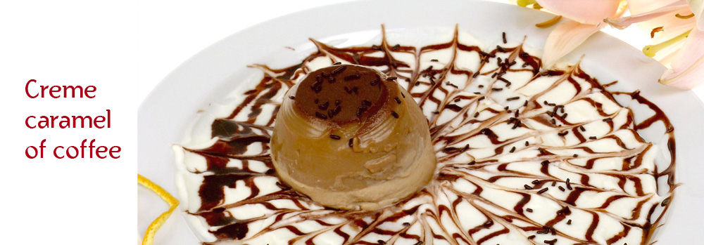 DESERTS Deserts Creme caramel of chesnuts. Creme caramel of coffee. Creme caramel of egg. Rice pudding. Custards. Cheesecake. Curd cake with honey of Las Hurdes. Pineapple cake. Irish coffee. Orange ice cream with honey.